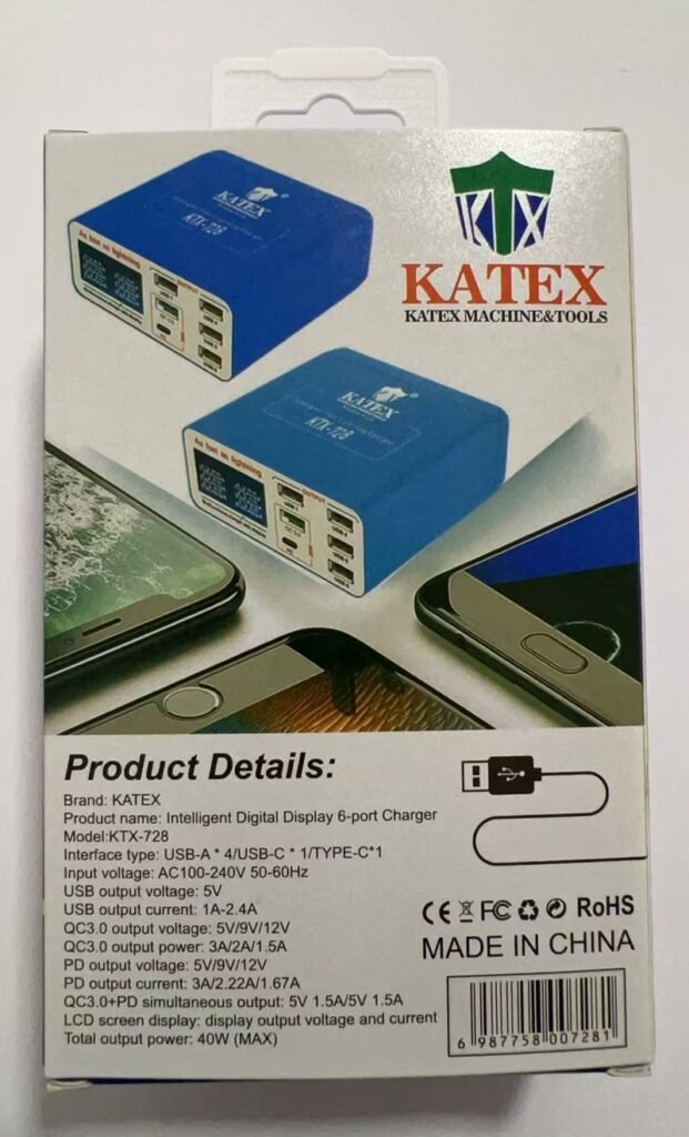 [B049] KTX-728 PD3.0 + QC3.0 SMART DIGITAL DISPLAY 6-PORT CHARGER BIVOLTE